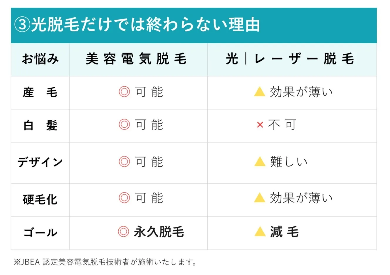 ✅ 光・レーザーで残った毛を処理したい方
